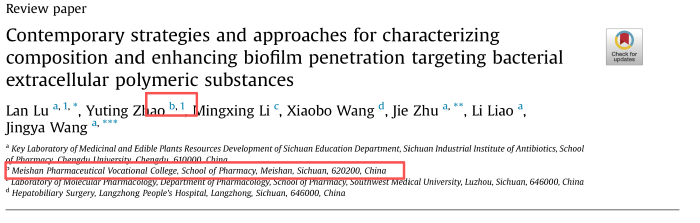 近日,眉山药科职业学院药学院赵玉婷老师与成都大学鲁兰研究员作为共同第